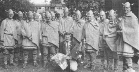 Birger Pedersem, blev begavet med kimbrernes tunge kæde, en kimbrermand i keramik og med blomster.