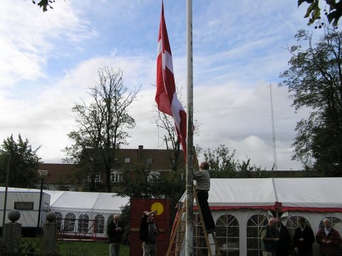 En af de opgaver som Kimbrerne også har til Kimbrerfesten, er at sørge for flaget i lystanlæget bliver hejst og taget ned, både lørdag og søndag. Om søndagen deltager alle Kimbrer i opgaven, man mødes kl. 09:30, og her er der mødepligt for alle kimbrer. Under flaghejsningen afsynges Flagsangen: Der er ingenting der maner. Når flaget er til tops, og flagsangen er færdig er der tid til lidt hygge for Kimbrerne.Se billeder fra flaghejsningen: 2008 -